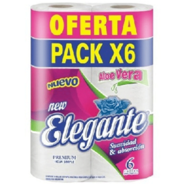 Bolsón de 12 unidades de: papel higiénico Elegante aloe vera 30mts paquete de 6u.